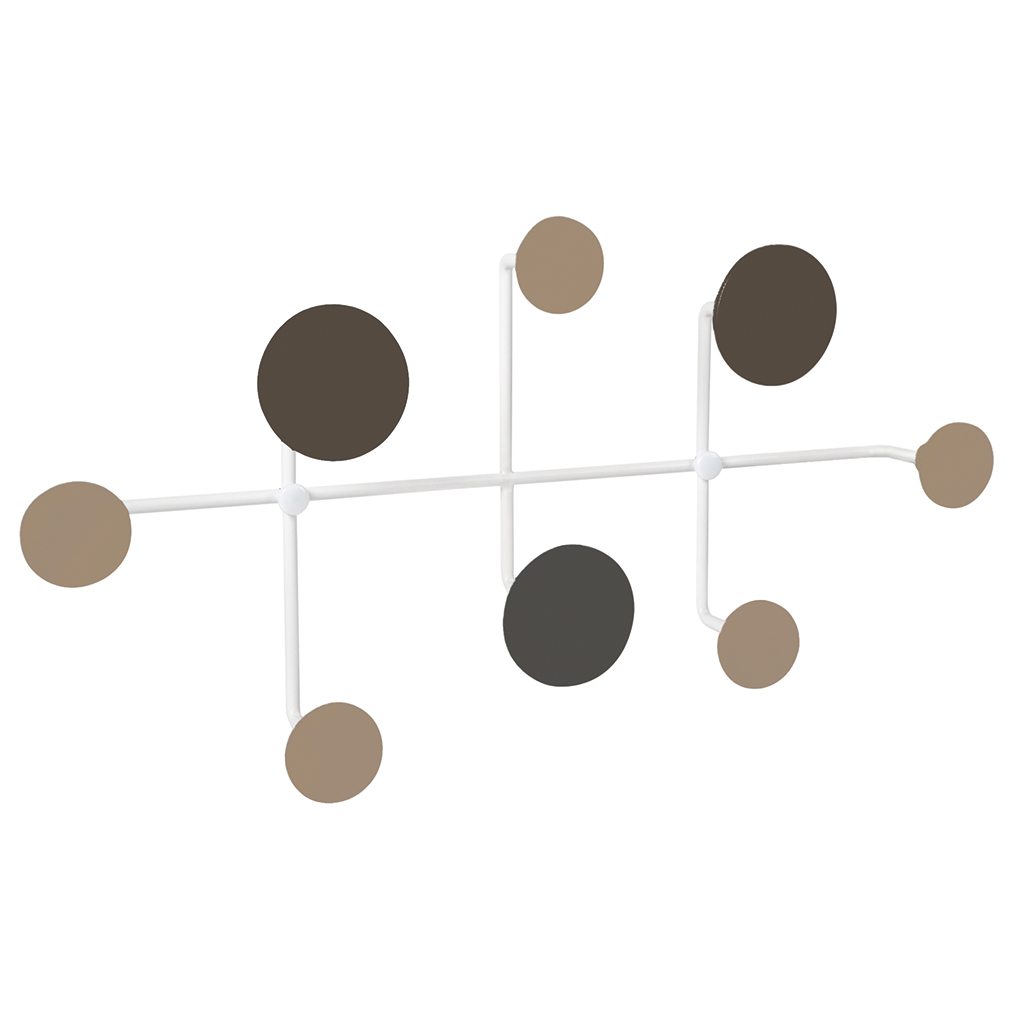 Deze wit metalen kapstok met 8 ronde kunststof knoppen is strak, speels en superhandig! De licht en donker taupe knoppen zitten op verschillende hoogtes, waardoor je makkelijk jassen, en tassen kwijt kunt – zonder dat alles over elkaar heen hangt! Ook perfect voor sjaals, hoeden of petten en sieraden! Inclusief bevestigingsmateriaal.